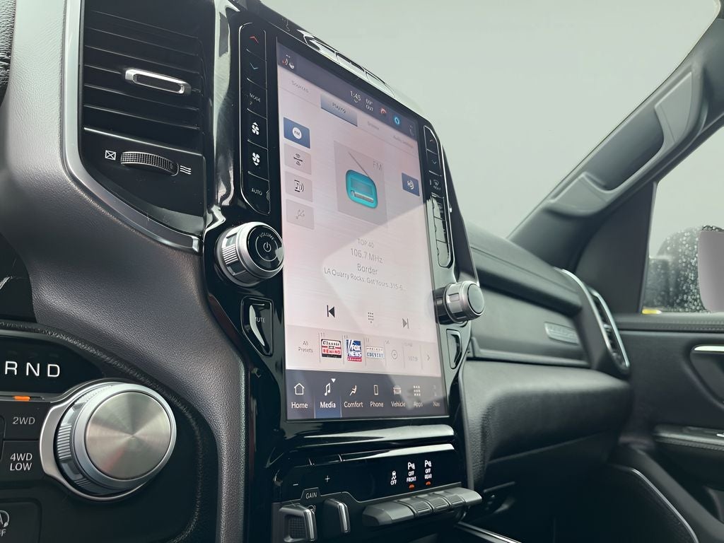 Balance Of Factory Warranty Remaining!, #1 Seat Foam Cushion, 3 Rear Seat Head Restraints, 4 Way Front Headrests, Accent Color Premium Power Mirrors, Auto Power-Folding Mirrors, Auto-Dimming Exterior Driver Mirror, Black Interior Accents, Black Painted Exterior Mirrors Caps, Body Color Front Bumper, Body Color Rear Bumper w/Step Pads, Bridgestone Brand Tires, Bucket Seats, Center Console Parts Module, Convex Wide-Angle Exterior Mirror Insert, Driver Seat Memory, Exterior Mirrors Courtesy Lamps, Exterior Mirrors w/Heating Element, Exterior Mirrors w/Memory, Exterior Mirrors w/Supplemental Signals, Front Seat Back Map Pockets, Full Length Upgraded Floor Console, GPS Navigation, Grille Surround 3 Body Color Tex 2 Black, Heated Front Seats, Heated Second Row Seats, Heated Steering Wheel, Laramie Level 1 Equipment Group, Leather Trimmed Bucket Seats, Navigation System, ParkView Rear Back-Up Camera, Power 2-Way Driver Lumbar Adjust, Power 2-Way Passenger Lumbar Adjust, Power Adjust 8-Way Driver Seat, Power Adjust 8-Way Front Passenger Seat, Quick Order Package 21H Laramie, Radio: Uconnect 5 Nav w/12.0 Display, Rain Sensitive Windshield Wipers, RAM Grille Badge - Chrome, Rear 60/40 Folding Split Recline Seat, Remote Tailgate Release, Sport Appearance Package, Sport Performance Hood, Ventilated Front Seats. 2025 Ram 1500 Laramie Diamond Black Crystal Pearlcoat
